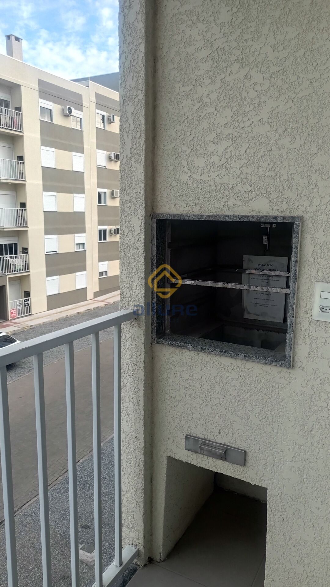 sala de estar com sacada e churrasqueira virada para a infraestutura do condominio