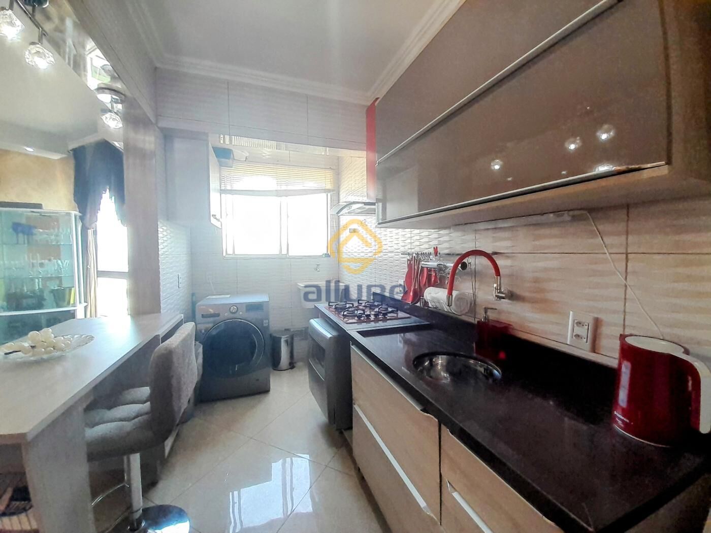 Aberturas novas, com 1 dormitório amplo, sala integrada, cozinha americana integrada com área de serviço,