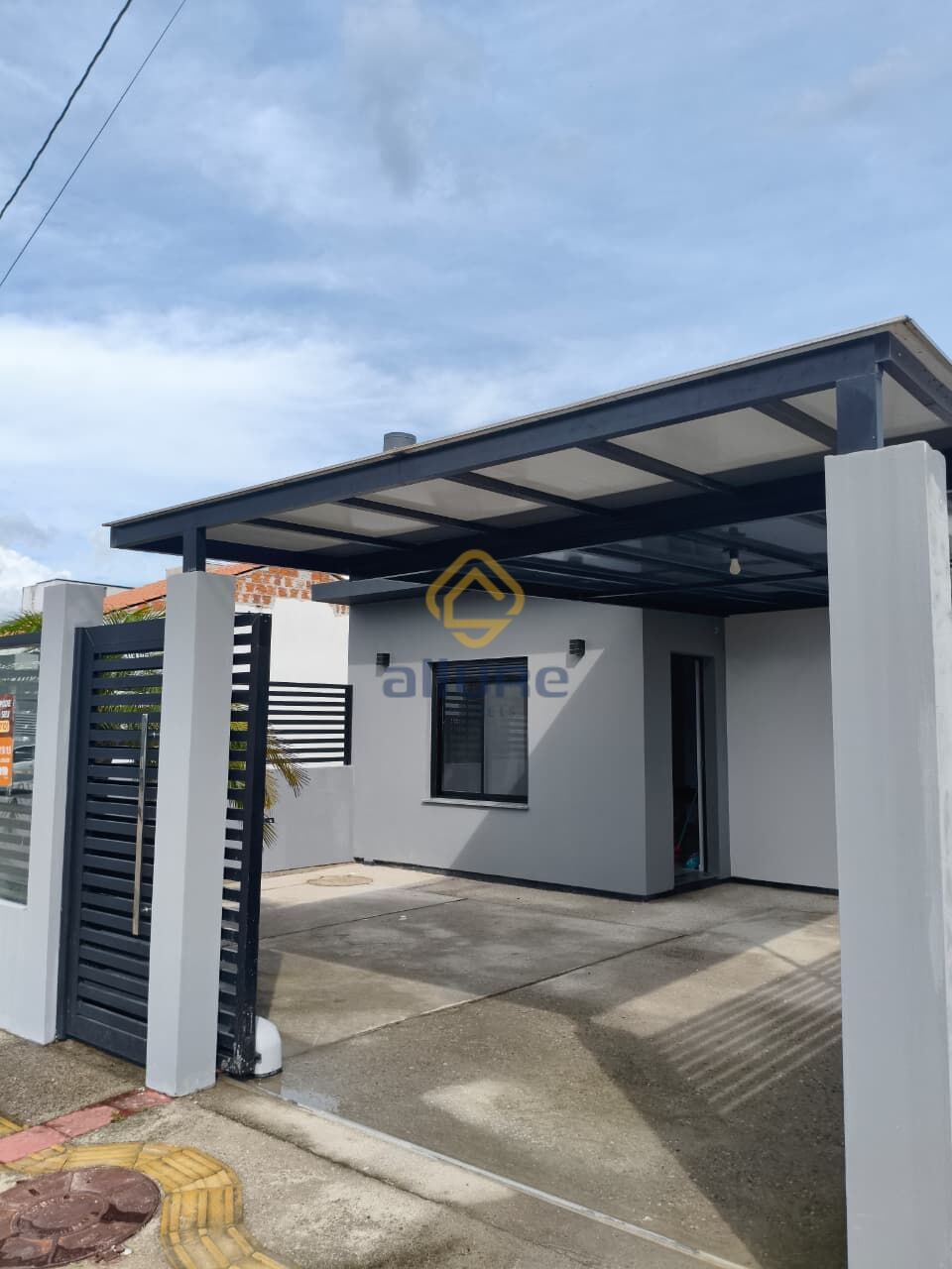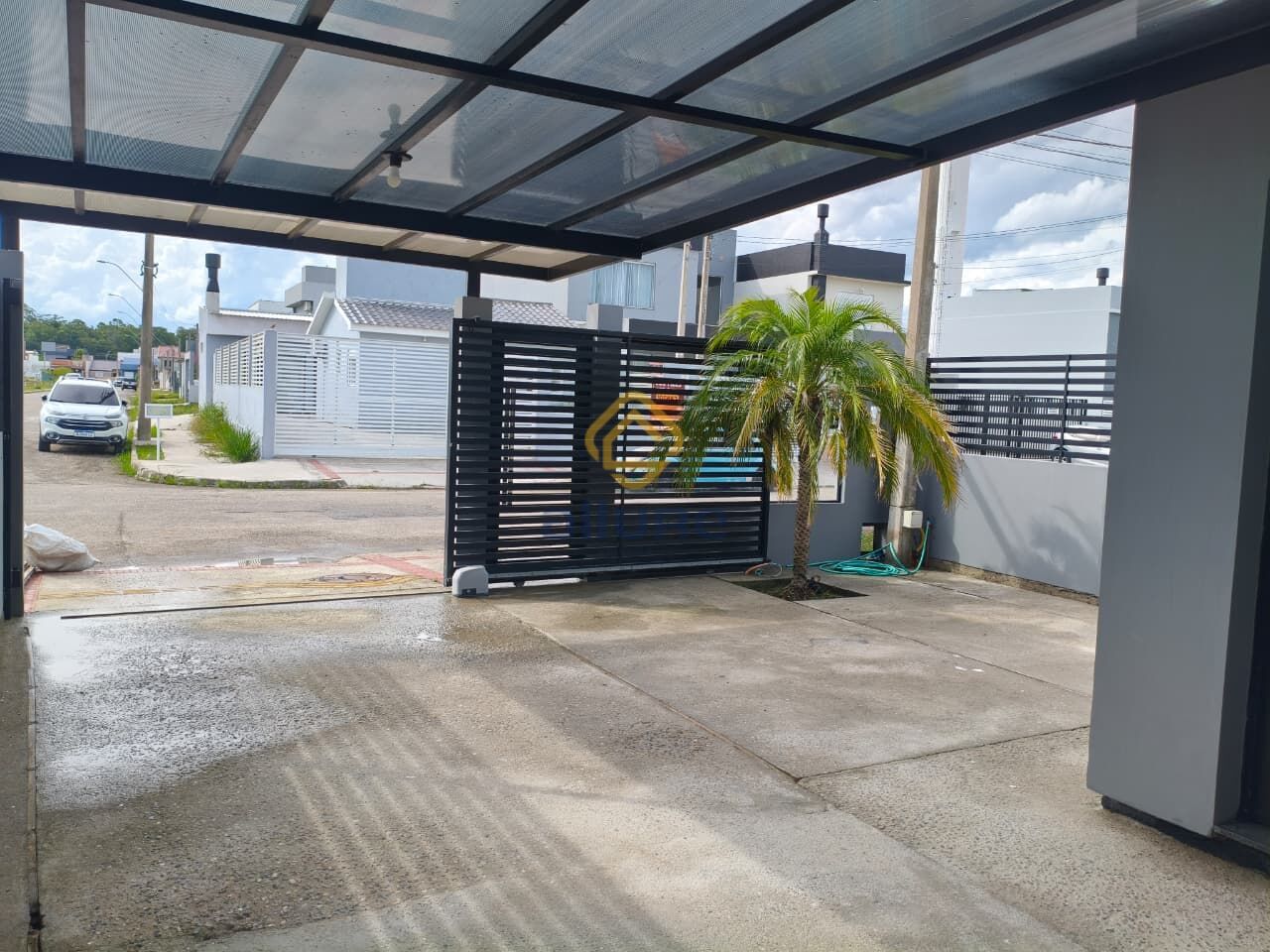 🚗 Garagem para 2 veículos, com cobertura em alumínio e policarbonato + portão eletrônico