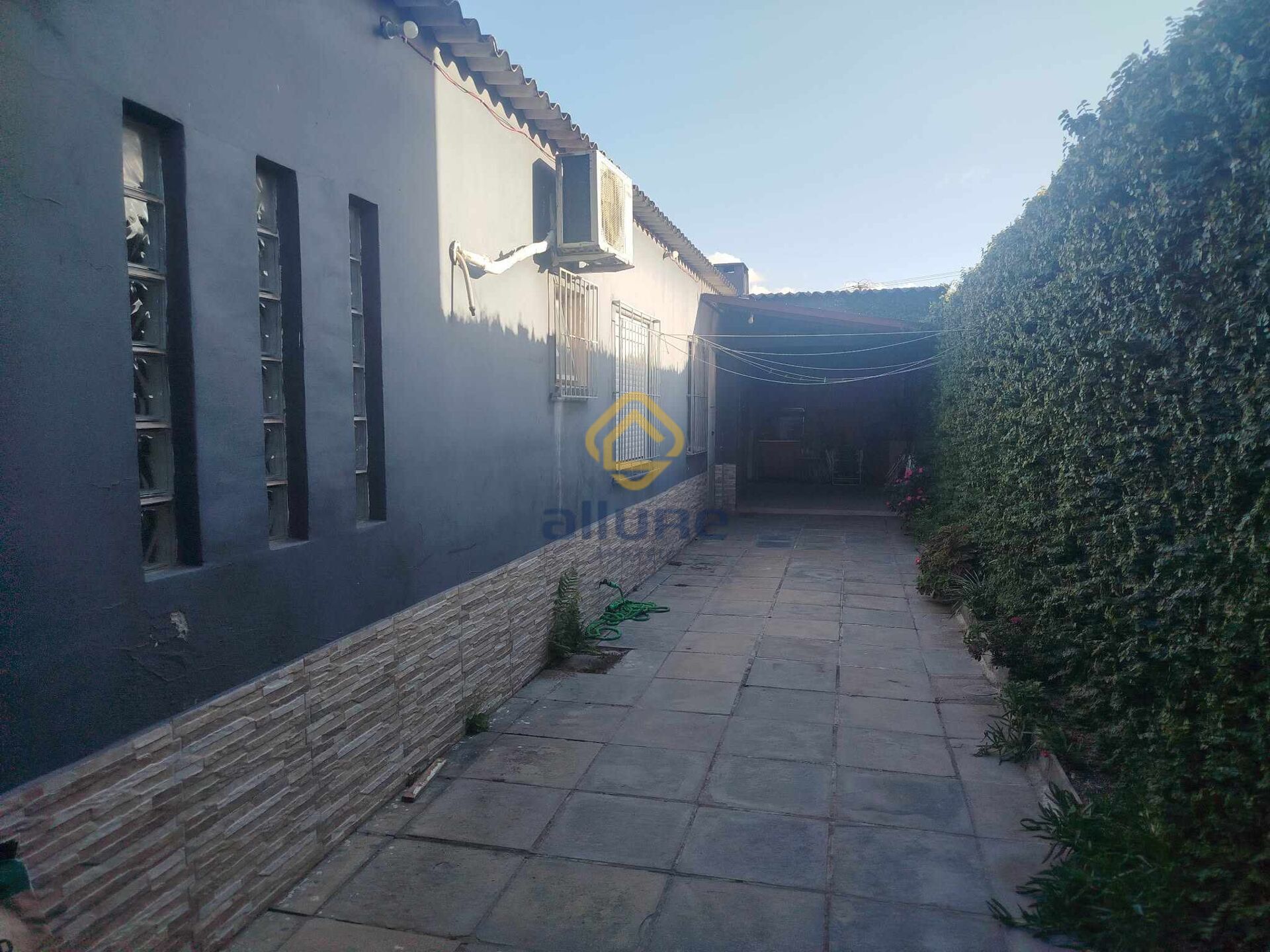 Imóvel todo murado (muros altos), aberturas em alumínio branco, porcelanato na cozinha e banheiro, assoalho nas demais peças e porta pivotante ampla na sala de estar.