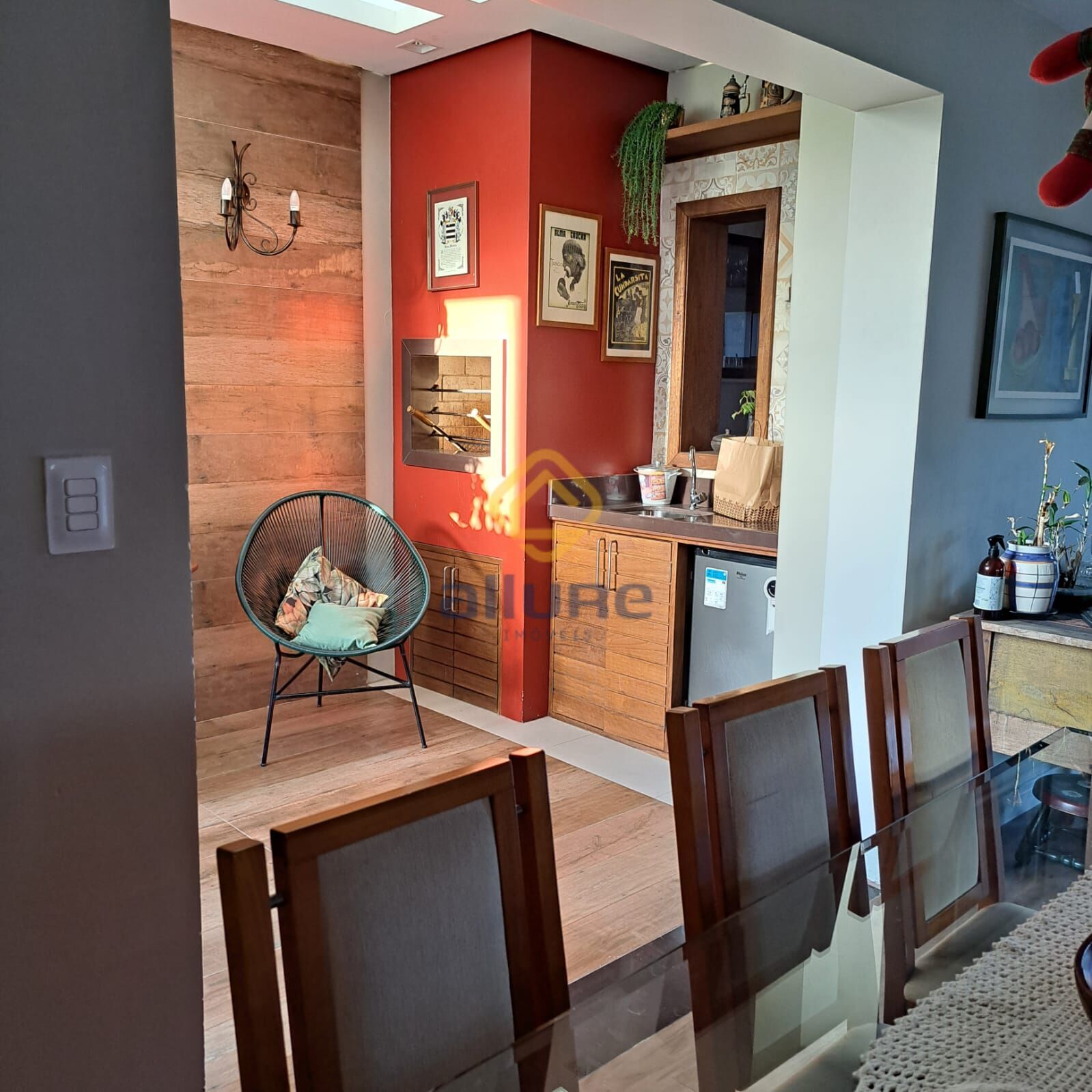 cozinha , lareira , sacada , closet e pátio.