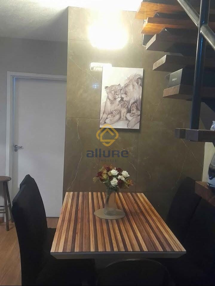 Sobrado com 2 dormitórios, sala de estar e jantar integradas, cozinha, lavabo, banheiro social, lavanderia fechada em vidro com acesso ao pátio e 1 vaga de estacionamento.