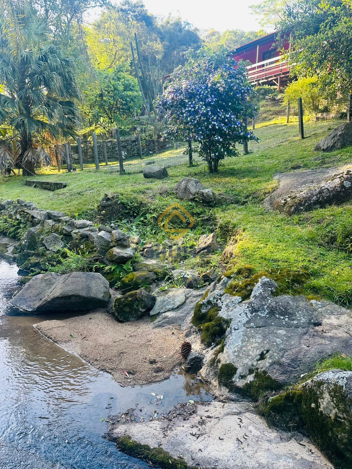 O terreno é amplo e muito bem aproveitado, com piscina ,arvores frutíferas e um riacho criando um ambiente agradável, acolhedor e em contato direto com a natureza.